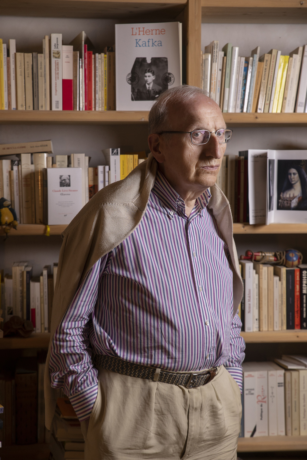 Jean-Claude Milner dans la bibliothèque de sa maison d’édition, Verdier.