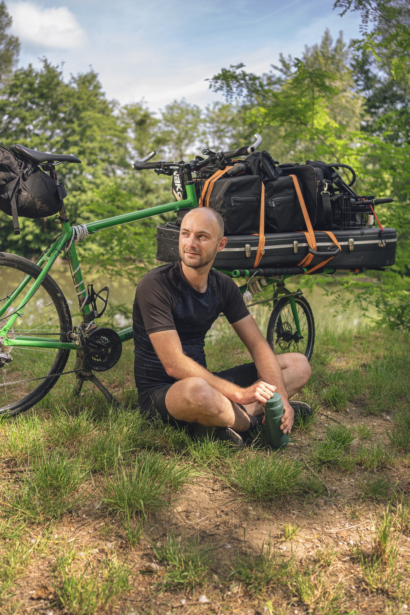 Joris Ragel, musicien itinérant à vélo pour Greenpeace Magazin.
